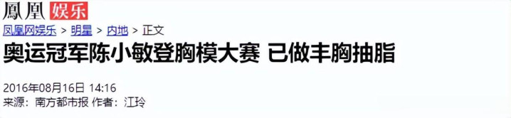 凤凰娱乐——奥运冠军陈小敏登胸模大赛 已做丰胸抽脂