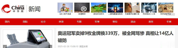中华网新闻——奥运冠军卖掉9枚金牌换339万,被全网骂惨真相让14亿人破防